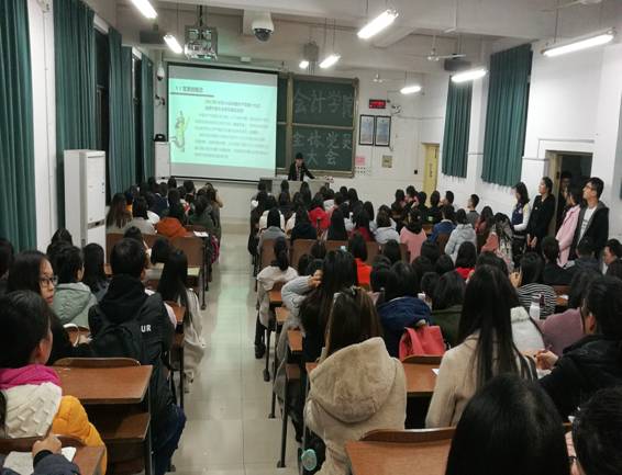 为更好地推进“两学一做”学习教育常态化制度化,学习领会党的十九大精神,11月19日晚,会计学院学生党支部在F204教室举行《中国共产党章程》(2017年10月24日)专题学习,由会计学院分党委书记贺彩虹同志主讲,会计学院全体学生党员参加了此次学习
